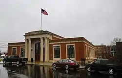 Union Station, also known as Davis Garage, is a historic train station located at Winston-Salem, Forsyth County, North Carolina. It was designed by Fellhimer & Wagner and built between 1924 and 1926. It is a one- to three-story, banked Beaux-Arts style steel frame building faced with brick and limestone. It consists of a rectangular main body, five bays wide and eight bays deep, with a large square east wing. The front facade features a limestone portico supported by paired heroic columns with stylized Corinthian order capitals. Surrounding the building are some surviving original landscape features. The station served as the city's sole passenger train station between 1926 and 1970.[2]