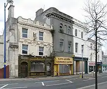The environment of Union Street - although designated as a local conservation area[12] is now considerably dilapidated following the closure of the majority of the night leisure businesses in an attempt to control the associated problems of late-night violence and drunkenness. The broken and collapsed historic frontage has fallen into considerable disrepair and many of the businesses associated with servicing the nighttime economy are now vacant. Some limited new developments consist of new housing, low-cost supermarkets and a few remaining late night venues. Despite the conservation area status, modern developments have not attempted to respect the original historic urban design, with retail parking taking up much of the newer street frontage with higher profile developments more aligned with the aspirations of the Plymouth Plan[13] which are focussed toward the development of links between the city centre and Millbay immediately to the south. It has a noticeable police presence late at night and early into the morning, to control drunk and lively people. As of 2002, it was also patrolled by military police to maintain a degree of integrity among sailors and marines,[14] though it is less frequented by service personnel than it once was.[6][14]