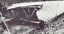 The aircraft struck two whistling swans with its stabilizers at 6,000 feet. One of the birds caused only superficial damage to the right stabilizer, approximately one foot long and an eighth of an inch deep, while the other crashed completely through the left stabilizer and came out the other side.[3][4] The impact caused the stabilizer to separate from the plane; it was found a quarter of a mile from the main wreckage.[3] Investigators estimated that the crash might not have occurred if the two birds had hit the aircraft just a few inches higher or lower.[3] The plane lost control, and in less than a minute, the aircraft's altitude dropped from approximately 6,000 feet to ground level, and its airspeed increased from 240 to 365 knots (280 to 420 mph; 440 to 680 km/h) indicated airspeed.[1]: p6 The plane crashed 10 miles (16 km) southwest of Baltimore and exploded, killing all of the occupants.[2]