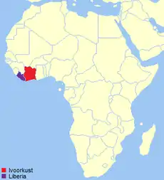 ![]() Ivory Coast (red) and Liberia (purple) | |