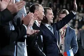 Contrary to its founders' expectations, Unity's election campaign in the 1999 election was a success with the party receiving 23.3% of the votes, considerably more than OVR's 13.3% and within one percentage point of the Communist Party's 24.3%.[32][33] The popularity of the prime minister proved decisive for Unity's victory.[33] The election results also made clear that Putin was going to win the 2000 presidential election, which resulted in competitors Luzhkov and Yevgeni Primakov dropping out. Yeltsin also gave Putin a boost by resigning as president on 31 December 1999.[32]