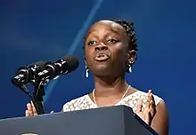 President Barack Obama, one of the key speakers at the summit, was introduced by child entrepreneur Mikaila Ulmer.[8] He discussed feminism, violence committed against women by groups such as ISIL and Boko Haram, and the progress made by his administration in supporting family leave and the minimum wage.[9][10] Vice President Joe Biden was another key speaker, citing campus sexual assault as a major issue.[10][11]