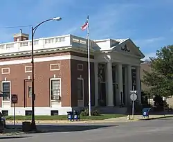 The United States Post Office is an historic building located in downtown Iowa Falls, Iowa, United States. Built in 1914, the structure was designed in the Neoclassical style, with Oscar Wenderoth as the supervising architect. The 1893 Colombian Exposition in Chicago was a major influence in the building's design.[2] The foundation is composed of North Carolina granite, while the walls are dark red brick that is laid in an English cross bond. The main entrance is framed by a portico that is held up by four columns of the Doric order. The interior features woodwork of white oak, a marble-terrazo floor, and a vaulted ceiling. It was listed on the National Register of Historic Places in 1994.[1]