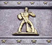The building was constructed in 1937, and was designed by Lorimer Rich for Louis A. Simon, the Supervising Architect of the Treasury.[1] It is a two to three story building clad on its main facade with polished "Dakota Mahogany" granite in the Classical Revival style. The main facade features six two-story Doric order piers and pilaster that surround the recessed entrance bays. The exterior also features five bronze relief sculptures by artists Edmond Amateis and Louis Slobodkin illustrating different forms of communication: from west to east, the god Mercury, jungle drums, mail, carrier pigeon, and smoke signals. The interior features eight murals executed between 1937 and 1939 by artist Kindred McLeary.[3]