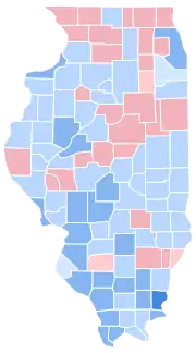 Clinton ultimately won the national vote, defeating incumbent President Bush.[2] Clinton became the first Democrat to win Illinois on a presidential level since 1964 and notably won seven of 21 Illinois counties that had backed Barry Goldwater in that election.[3] He remains the only Democrat to win Johnson County and Pope County[note 1] — Southern and anti-Yankee in culture but converted to Unionism by war[4] — since Stephen A. Douglas in 1860.[5] In Northern Illinois Clinton became the first Democrat to ever win Whiteside County which had voted in Presidential elections since 1840,[5] the first to win DeKalb County since Franklin Pierce in 1852, and the first to win Bureau, McDonough and Warren Counties since Franklin D. Roosevelt in 1932.[3]