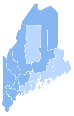 | Aroostook | 18,022 | 51.80% | 10,400 | 29.89% | 5,747 | 16.52% | 623 | 1.79% | 7,622 | 21.91% | 34,792 |
