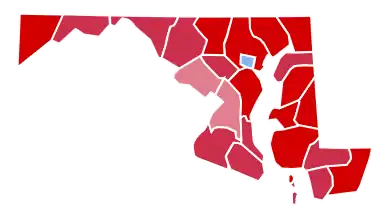 Maryland was won by incumbent President Richard Nixon of California and Vice President Spiro Agnew (a Maryland native), winning 61.26% of the vote to George McGovern and Shriver's 37.36%. Nixon won every county-equivalent in the state except Baltimore City. He won over 77% of the vote in Carroll County, and over 70% in 9 counties overall. This is the last time Prince George's County has voted Republican in a presidential election,[1] and the last of only 6 occasions[lower-alpha 1] since the emergence of the Republican Party that Maryland has voted more Republican than the nation as a whole.[2] As of 2020, this remains the strongest performance by a Republican in Maryland.