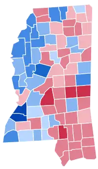 | Coahoma | 3,441 | 35.80% | 5,776 | 60.10% | 256 | 2.66% | 138 | 1.44% | -2,335 | -24.30% | 9,611 |