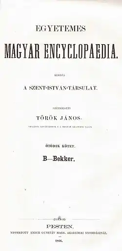 The Universal Hungarian Encyclopaedia (Hungarian "Egyetemes magyar encyclopaedia") is a 13-volume Hungarian lexicon published in the second half of the 19th century.