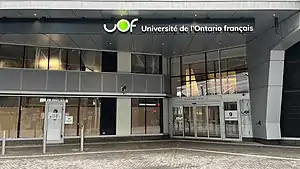 The Université de l’Ontario français (abbreviated as UOF; lit. 'University of French Ontario')[note 1] is a French-language public university in Toronto, Ontario, Canada. The university campus is situated in the East Bayfront neighbourhood of downtown Toronto, near the Toronto waterfront.