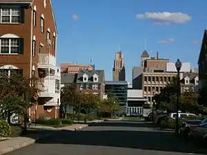 One of the main north-south thoroughfares of University Heights is Martin Luther King, Jr. Blvd. (formerly High Street) home to many historic buildings. Eberhardt Hall at NJIT, St. Mary's Abbey Church, Essex County Hall of Records, and Essex County Courthouse are among Newark's registered historic places, as is the former Essex County Jail.[6] The neighborhood is served by the Washington Street, Warren Street/NJIT, and Norfolk Street stations of Newark's Light Rail which links to Manhattan via the PATH and NJTransit rail systems at Newark's Penn Station.