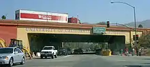 The 60 freeway's University Avenue underpass separates the city and the university. Painted on the support walls of the underpass is the Gluck Gateway Mural, a 190-foot (58 m) mural of Riverside and UCR history from the days before the Citrus Experiment Station through 2000, the year the mural was painted.[11]