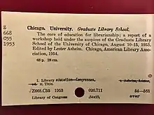 The University of Chicago Graduate Library School (GLS) was established in 1928 to develop a program for the graduate education of librarians with a focus on research.[1] Housed for a time in the Joseph Regenstein Library, the GLS closed in 1989.[2] GLS faculty were among the most prominent researchers in librarianship in the twentieth century. Alumni of the school have made a great impact on the profession including Hugh Atkinson, Susan Grey Akers, Bernard Berelson, Michèle Cloonan, El Sayed Mahmoud El Sheniti, Eliza Atkins Gleason, Frances E. Henne, Virginia Lacy Jones, Judith Krug, Miriam Matthews, Kathleen de la Peña McCook, Elizabeth Homer Morton, Benjamin E. Powell, W. Boyd Rayward, Charlemae Hill Rollins, Katherine Schipper, Ralph R. Shaw, Spencer Shaw, Peggy Sullivan, Maurice Tauber and Tsuen-hsuin Tsien. In February 2016, Carla Hayden (PhD, 1987) was nominated by President Obama to serve as Librarian of Congress. She was confirmed in July 2016.[3]