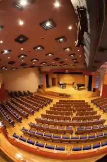 The university has its own performance venue, with a 2,000 seat auditorium and a stage. Its official name is the Ceremonial Amphitheatre (in Greek: Αμφιθέατρο Τελετών) and it is used for the performances of the music department, theatrical plays, as well as all the official ceremonies of the university, such as graduations. In 2012, vandals entered the space and burnt a 35,000 Euro piano. The remains of the burnt piano have been turned into an artwork, a monument against violence, placed at the entrance of the space. [19][20]