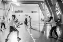 The university has its own sports indoor hall and its own gym. It is active in many sports and is taking part in university competitions in Greece. Its most successful departments are fencing and volleyball. The university's volleyball team was coached by former Greece men's national volleyball team and Iraklis VC former coach Alekos Leonis.[34][35][36]