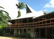 Discussion of a regional university for the South Pacific began in the early 1950's, when an investigation by the then-South Pacific Commission recommended the creation of a "central institution" for vocational training in the South Pacific, with a university college as a distant goal.[3][4] In December 1962, the Fijian Legislative Assembly discussed establishing a university in Fiji.[5] In 1964, New Zealand proposed the establishment of a regional teachers' training college in Suva.[4]: 8 In 1965, the governments of Great Britain and New Zealand appointed a "Higher Education Mission to the South Pacific", chaired by Sir Charles Morris, to investigate "the future education requirements of the South Pacific area" and recommend the type of level of institutions needed.[3][4]: 7 In 1966 the Mission reported back, recommending the establishment of "“fully autonomous university comprehending within itself, as well as Faculties of Arts and Science, the Fiji School of Medicine, the School of Agriculture in Fiji, a College for the education and training of secondary teachers, the Pacific Theological College, and, in so far its activities in the field of diploma courses are concerned, the Derrick Technical Institute".[4]: 24 The Mission recommended that it be called the University of the South Pacific.[4]: 24 The former Royal New Zealand Air Force seaplane base at Laucala Bay in Fiji was recommended as a suitable location.[3][6] A subsequent report by Norman Alexander fleshed out the proposal, and in 1967 the Fijian government passed an ordinance establishing the university's interim council.[7] In February 1970 this was replaced with a royal charter.[8][9]: 46