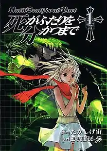 Until Death Do Us Part (Japanese: 死がふたりを分かつまで, Hepburn: Shi ga Futari wo Wakatsu made) is a Japanese manga series written by Hiroshi Takashige and illustrated by DOUBLE-S.[2] Until Death Do Us Part began its serialization on Young Gangan's December 2005 issue[3] and ran until November 20, 2015.[4] The story centers around a young girl with strong precognitive abilities. Due to these abilities, she is held hostage by a Yakuza group looking to make a profit off of them. However, knowing what was to come, she spots a blind swordsman in the crowd and immediately recognizes him as her only way out. She hires him to protect her "until death do us part", and thus begins a long road of action-packed confrontations to keep the young girl safe and her abilities out of the hands of those who would exploit them.