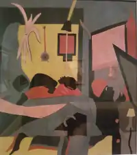 Untitled (The Birth) is a 1938 tempera painting by American artist Jacob Lawrence, located in the Indianapolis Museum of Art, which is in Indianapolis, Indiana. Depicting a scene of childbirth in flat, geometric forms and bright colors, it is very much a product of the Harlem Renaissance.[1]