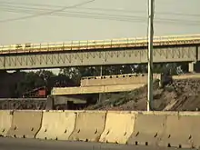 The following year, bridge abutments were put into place for new replacement bridges for the project. Final work on the Edgerton Street bridge was completed, for a total cost of $3 million.[4] Cranes began coming onto the project to haul steel material into staging areas for bridge replacement. Also, late in 2005, bridge piers were installed and put into place for bridge construction on the west end of the project. This set of piers were put into place on a flyover bridge from NB Interstate 35E to WB Interstate 694. As of December 2005, all original bridges still existed throughout the project. No work on lane widening or interstate reconstruction was in progress at the time.