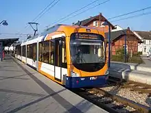 Another ten Variobahn cars (133 to 142) followed from July 2006, which are essentially technically identical to the cars of the first delivery. The RNV was commissioned to carry out the operation of transport services of the former transport companies from 2005. Therefore, these cars were painted in the orange-blue RNV design in the factory. Three identical vehicles (761 to 763) were procured from MVV Verkehr; they are also used on the OEG routes as part of the common vehicle pool.