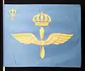 The units last colour was presented to the wing at the Artillery Yard in Stockholm by the Supreme Commander, General Owe Wiktorin on 30 April 1996.[6] It was handed over to the Uppsala Air Force Training schools (F 20) as a traditional colour when F 16 was disbanded on 31 December 2003. The colour is drawn by Ingrid Lamby and manufactured by machine in appliqué technique by the Engelbrektsson Flag factory. Blazon: "On blue cloth in the centre the badge of the Air Force; a winged two-bladed propeller under a royal crown proper. In the first corner the provincial badge of Uppland; an orb, banded and ensigned with a cross crosslet and in the second corner a seven-pointed star (a legacy from seven disbanded wings: the former Västmanland Wing (F 1), Roslagen Wing (F 2), Östgöta Wing (F 3), Svea Wing (F 8), Södermanland Wing (F 11), Bråvalla Wing (F 13) and Södertörn Wing (F 18). All décor in yellow.[6]