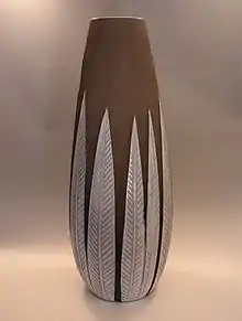Upsala-Ekeby Ltd. was established on 29 January 1886.[1] Uppsala began with production of bricks and tiles. The raw material for production was within the property, and the clay had been found very suitable for ceramic manufacturing. Among the founders of the company were the famous Uppsala families of von Bahr, Ekstrand and Holm, who for decades was to characterize the company's development into a successful industrial company.[2] Brick Production began the same year the company was founded with ceramic tile the following year. After 1910, the company began a fierce competition to make itself a major competitor on the stove tile market . One of its competitors was the Upsala Tile Factory AB. Upsala-Ekeby bought the competing factory in 1916.
