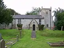The small parish church, dedicated to St Augustine of Canterbury, is built in limestone ashlar and dates from the 13th century. The nave was rebuilt in 1633, and the west tower was added in the same century. Following restoration in 1891 by C.E. Ponting, the only clearly 13th-century features are the chancel arch (described as "good" by Pevsner)[13] and – inside the chancel – roll-moulded string courses, a trefoil piscina, and an aumbry. The font is 12th-century, on a 19th-century base. Monuments include a late 14th-century effigy of a knight – probably John, 5th Baron Lovel (1341–1408) – and a 15th-century brass of a priest.[14]