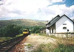 Ur-Les Escaldes is a railway station in Ur, Occitanie, France. The station is on the Ligne de Cerdagne known as Le Petit Train Jaune. The station is served by TER (local) operated by the SNCF. The line is a narrow gauge line at 1,000 mm (3 ft 3 3⁄8 in) and has a third rail pickup at 750 V DC (3rd rail).