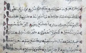 Known by various titles in English, including The Book of the Battle of Tambuka and The Story of Heraclius, the story recounts numerous events of the Byzantine-Arab Wars and Byzantine-Ottoman Wars between the Muslims and Romans (the contemporary name for the Byzantines). The Byzantines were represented by the Emperor of the Byzantine Empire, Heraclius. The story covers a period from 628 (the Battle of Mu'tah) to 1453 (the Fall of Constantinople).[1] "Tambuka" is the Swahili rendering of Tabuk, a city located in north-western Saudi Arabia. The oldest manuscript of the epic is dated 1141 on the Islamic Calendar, corresponding to AD 1728. It was written at Yunga, a royal palace in the old city of Pate (the palace has since been destroyed). In strophe 1124–1125, the author notes that the "king of Yung"' (that is, the then Sultan of Pate) asked him to write an epic on the heroic deeds of the first followers of the Islamic prophet Muhammad. The author identifies himself in one of the final stanzas (1146) as Mwengo, son of Athumani or Osman. Not much more is known about him other than that he wrote at the court of the Sultan of Pate, that he was no longer a young man by 1728, and that some other poems are ascribed to him.[2] He also had a son, Abu Bakr bin Mwengo, who wrote an imitation of his father's epic somewhere in the middle of the 18th century.[3]