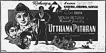 Uthama Puthiran (transl. Virtuous Son) is a 1958 Indian Tamil-language historical action film directed by T. Prakash Rao. Co-produced by C. V. Sridhar, who also wrote the screenplay, the film stars Sivaji Ganesan and Padmini, with M. K. Radha, M. N. Nambiar, K. A. Thangavelu, Ragini and Kannamba in supporting roles. It revolves around twins who are separated at birth; one grows up as a kind and honest man, while the other grows up as a greedy and arrogant man.