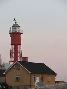 Utklippan is a Swedish lighthouse and the name of two small islands, Södraskär (South skerry) and Norraskär (North skerry). It has been a light station since 1789 when a basket light was in use. The current tower (built in 1870) replaced an older tower built in 1840 on top of an old fortress. The flame ran on colza oil. In 1887 the colza oil lamp was replaced with a kerosene lamp. It has been powered electrically since 1948.