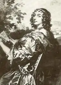 In the history of Dutch music and literature, Utricia Ogle lives on above all as the unattainable 'muse' of Constantijn Huygens. In addition to her beautiful voice, her beauty is a permanent topos in his oeuvre. In 1644, Huygens and the Haarlem composer J. A. Ban published Latin poems in quick succession about a portrait of Ogle, presumably by the Anglo-Dutch painter Anthony van Dyck. The whereabouts of this portrait is unknown. It is now certain that the drawing in Turin, which has always been published as a portrait of Utricia, cannot represent her.[1]