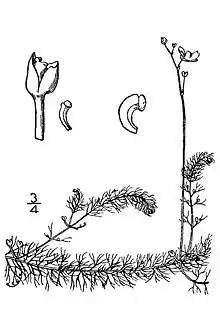 Utricularia geminiscapa, the hiddenfruit bladderwort,[1] is a perennial, medium-sized species of aquatic bladderwort. This species occurs naturally in the northeastern United States and Canada with one record from British Columbia in Western Canada. A small population is present near Westport in New Zealand where the species is thought to have recently naturalized- it was first recorded in this area in 1975.[2]