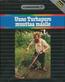Uuno Turhapuro muuttaa maalle is a side-scrolling video game, available for the Commodore 64.[1] It was developed by the Finnish programmer Pasi Hytönen in 1986 and published by Amersoft, one of the first game publishers in Finland.