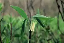 Uvularia sessilifolia, the sessile bellwort, sessileleaf bellwort, little merrybells[2] or wild oats, is a species of bellwort native to eastern and central North America. It grows in woodlands with wet or dry soils.
