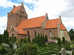 Standing on a hilltop, Væggerløse Church dates from the late Romanesque period. It has early 16th century frescos depicting the Supper at Emmaus.[3]