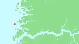 Værlandet is an island in Askvoll Municipality in Vestland county, Norway. The 9-square-kilometre (3.5 sq mi) island lies immediately east of the Bulandet island group. The island of Alden lies about 2 kilometres (1.2 mi) northeast of Værlandet. The island lies about 16 kilometres (9.9 mi) west of the mainland coast of Askvoll, and it is only accessible by boat. There is a regular ferry route connecting Værlandet to the mainland village of Askvoll. There is a series of bridges that connect Værlandet to the islands of Bulandet to the west. Værlandet Chapel is located on the island. In 2001, there were about 200 residents on the islands.[1] The Værlandet LORAN-C transmitter was located on the island, but demolished on 19 Sep 2017.