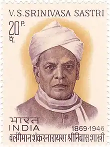 Valangaiman Sankaranarayana Srinivasa Sastri, (also called V. S. S. Sastry) CH PC (22 September 1869 – 17 April 1946) was an Indian politician, administrator, educator, orator and Indian independence activist. He was acclaimed for his oratory and command over the English language.[1][2] Srinivasa Sastri was born to a poor temple priest in the village of Valangaiman near Kumbakonam, India. He completed his education at Kumbakonam and worked as a school teacher and later, headmaster in Triplicane, Madras. He entered politics in 1905 when he joined the Servants of India Society. Sastri served as a member of the Indian National Congress from 1908 to 1922, but later resigned in protest against the Non-Cooperation movement. Sastri was one of the founding members of the Indian Liberal Party. In his later days, he was strongly opposed to the partition of India.[3]