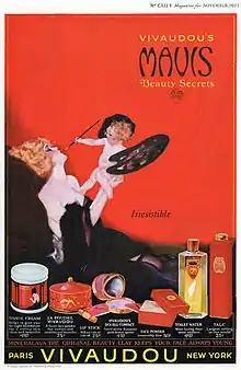 V. Vivaudou Inc., was an American perfume manufacturer[1] that operated in New York City.[2] V. Vivaudou Inc., was taken over by the United Drug Company in February 1916, for a price of $1,500,000. Among its perfume and cosmetics line, Mavis Talcum Vivaudou red tin was quite often part of the women's toiletries checklist. In August 1919 the United Drug Company sold V. Vivaudou Inc., to a syndicate of New York City men for $2,500,000.[3] In 1920, it was considered one of the world's largest manufacturers of toiletries.[4]
