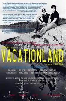 Vacationland is an independent, gay-themed, coming-of-age film directed by Todd Verow and starring Brad Hallowell as Joe and Gregory J. Lucas as Andrew, two high school youth who have a crush on each other, but have difficulties to reconcile with their sexuality in a small town. Vacationland is one of the official slogans for the state of Maine, where the events of the film are taking place.