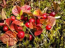 Vaccinium praestans is a hardy plant that can grow in harsh cold climates. However, it requires shelter from strong winds and needs insulation from snow and leafs to protect its roots in freezing temperatures. It is best suited for slightly sandy, loamy soils. It also prefers moderately moist, mesic soils with a high acidity, ranging in PH from 4.5 to 6.[8] It can quickly become chlorotic if lime is present in the soil, which means it won't produce enough chlorophyll and its green leaves will become a pale yellow to yellow-white color.[9][10] It also does not like root disturbances or stagnant water at the roots, preferring moist, yet well drained soils but can not tolerate drought.[1] The plant can grow in semi-shady conditions, but fruits best when in full sunlight.