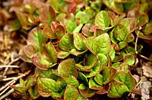 Vaccinium praestans is a herbaceous, slow growing perennial shrub, that can grow up to 20 cm (7.9 in) tall in an average growing season. The bark of the stem is a yellowish, gray color and grows almost horizontal with the ground.[1] It has small leafy branches, approximately 6–10 cm (2.4–3.9 in) in length, that extend out, away from its stem. Its leaves are shaped either obovate or orbicular around the head and then taper to a narrower base. These leaves are fairly thin but stiff, usually 2–6 cm long and are serrulate around the edge.[2] The leaves are known to change color several times a season, from bright green to a purple-red color The Vaccinium praestans flowers in June–July. Its flowers range from pinkish-white to pink in color with yellowish corollas, and are5–6 mm (0.20–0.24 in) in length. Later in summer It will fruit a delicious, juicy bright red berry, that can grow up to 8–12 mm (0.31–0.47 in) in diameter.[3][2] It is referred to as "the stinkbug berry" due to its characteristic, very pronounced odor that resembles the smell of bugs.