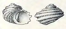 | Drawing with two views of a shell of Vaceuchelus delpretei | |