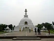 Next to the coronation tank stands the Japanese temple and the Viśvā Śānti Stūpa (World Peace Pagoda) built by the Japanese Nichiren Buddhist sect Nipponzan-Myōhōji. A small part of the Buddha's relics found in Vaiśālī have been enshrined in the foundation and in the chhatra of the Stupa.