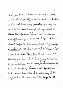 it if you told me that such or such a fellow writes with difficulty, can't do compound fraction, or does not know any geometry if I only knew that he has learned enough at my school to know the difference between true manliness and effeminacy. I never want again to hear “clever” people complaining that "ปัญญาท่วมหัวเอาตัวไม่รอด".