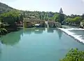 - Borghetto, a frazione with the Ponte Visconteo ("Visconti Bridge"), a fortified dam built in 1393 by Gian Galeazzo Visconti, Duke of Milan. The bridge is 650 m long and 25 m wide. It was connected to the nearby Scaliger Castle by two tall merloned walls, and integrated in the fortified complex known as Serraglio which extended for c. 16 km in the Veronese plain up to Nogarole Rocca.