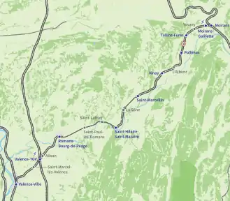![]() Map of the Valence-Moirans railway line. | |||||||||||||||||||||||||||||||||||||||||||||||||||||||||||||||||||||||||||||||||||||||||||||||||||||||||||||||||||||||||||||||||||||||||