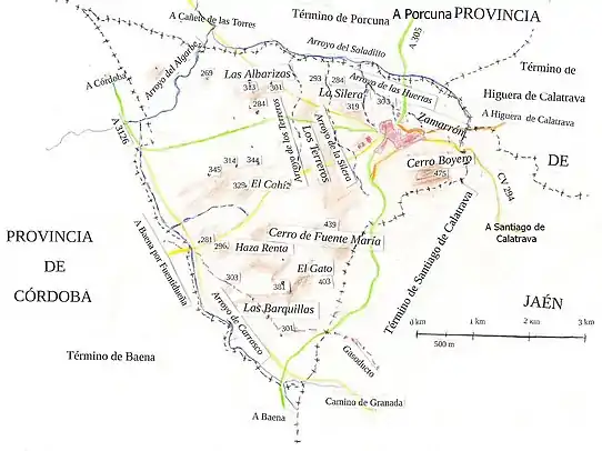 In the center of the municipality, Las Barquillas (319 masl), Haza Renta, El Cahíz (329 masl) and Los Terreros stand out. To the north, Las Albarizas (313 masl), La Silera (319 masl) and Zamarrón.