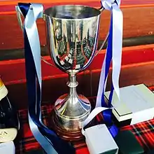 The trophy was originally donated to the Camanachd Association in memory of Valerie Fraser. It was originally a trophy for male teams and it was won by Glenurquhart in 1991.[1] Some years later, after the competition fell into abeyance, it was donated to the Women's Camanachd Association and was first played for on 28 July 2002.