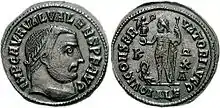 ![]() Follis of Valerius Valens struck in Alexandria | |||||